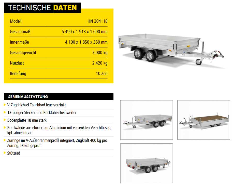 Preise teilweise im Onlineshop oder auf Anfrage unter silvia@steininger-anhaenger.at !